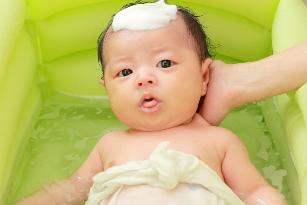 沐浴は基本的に新生児期のみのお世話です。1ヶ月健診で問題が無ければ、大人と同じお風呂に入れるようになります。