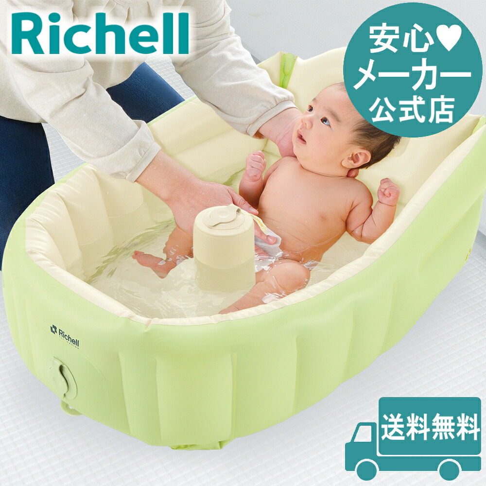 エアポンプ内蔵で、わずか1分でラクに空気が入ります。小さくたためるので、旅行や里帰りにも便利です。背もたれのほどよい傾斜とストッパーが赤ちゃんに安心感を与え、安全にバスタイムを楽しめます。壁掛け用の穴が付いているので、使用後は風通しよく乾かせます。