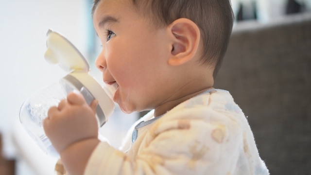マグを使うことで、赤ちゃんは自分の力で飲み物を飲む練習ができます。