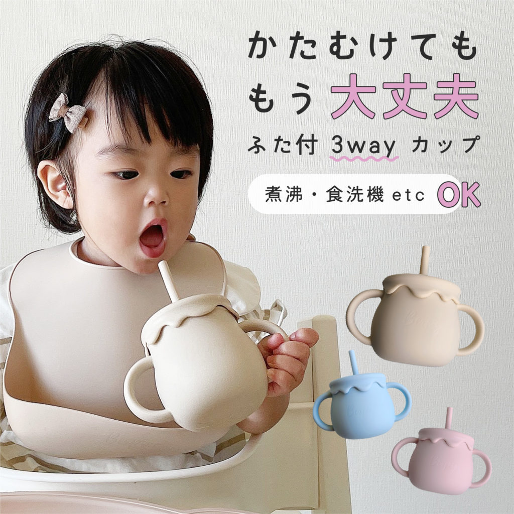コップで飲み物を飲むには、両手でバランスを取ったり傾ける角度を考えなければならないので、幼いこどもには難しいものです。