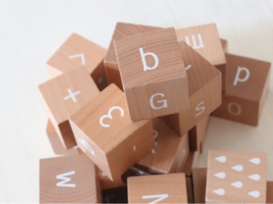 遊びだけではなく、アルファベットも学べるタイプの積み木です。