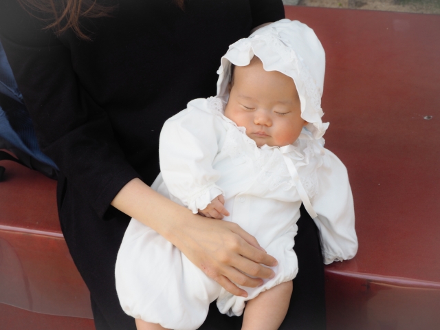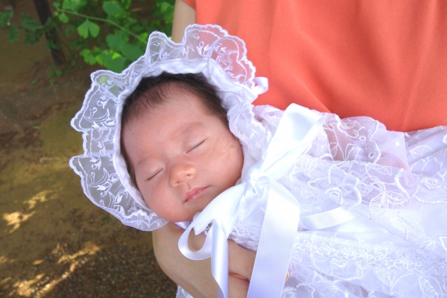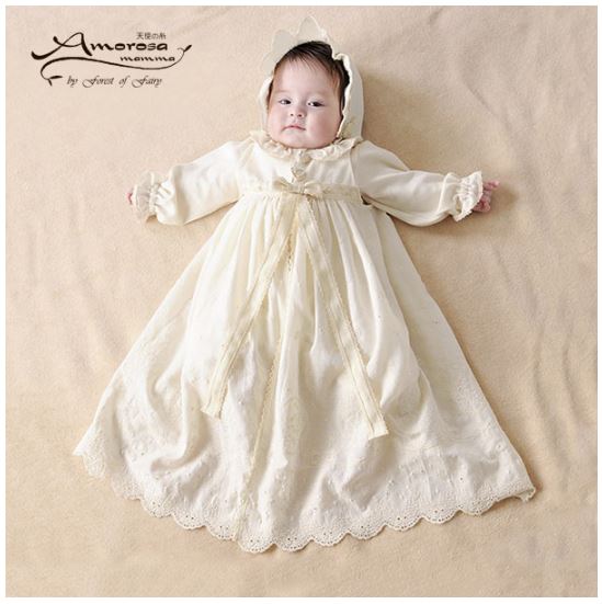 赤ちゃんが産まれた病院から退院する日に、退院着としてセレモニードレスを着ます。