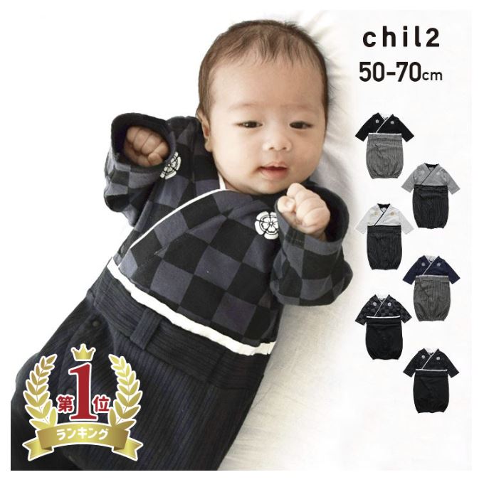 新生児から長く使える、男の子にぴったりの和装ツーウェイオールです。
