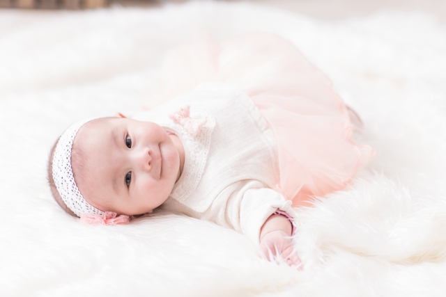 かわいいピンク色のドレスが、赤ちゃんをより愛らしい印象にしてくれます。
