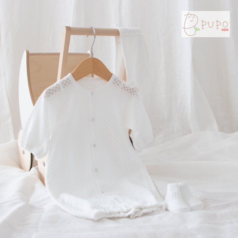 吸水性と通気性に優れた綿100%の素材は、汗をかきやすい赤ちゃんにぴったり。