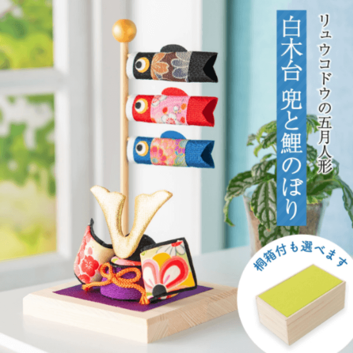 - 5)龍虎堂(リュウコドウ)白木台 兜と鯉のぼり|出産準備赤ちゃんまーけっと