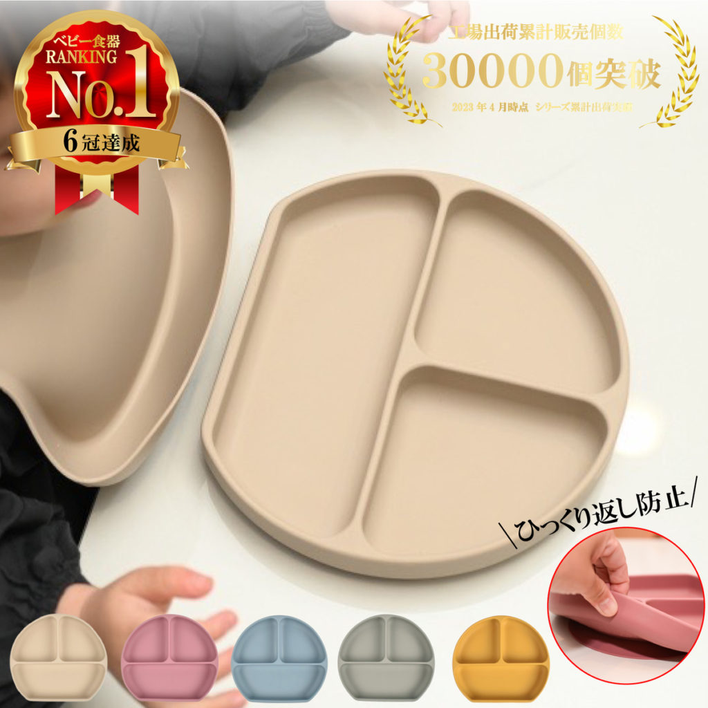 また、最近の離乳食アイテムは、食事の楽しさとスキルの発達をサポートする機能が備わっていて、分割仕切りや吸盤付きなどのアイテムがありおすすめです。