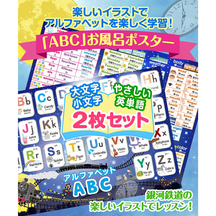 水に強く、お風呂に貼れるので、お風呂が親子の楽しい勉強時間になります。
