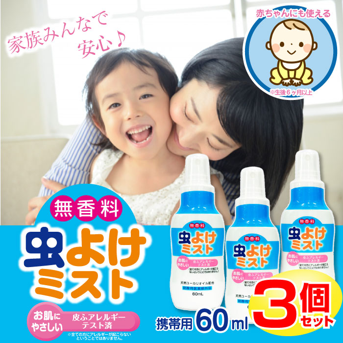 虫よけミスト 60ml×3本セット 無香料 携帯用