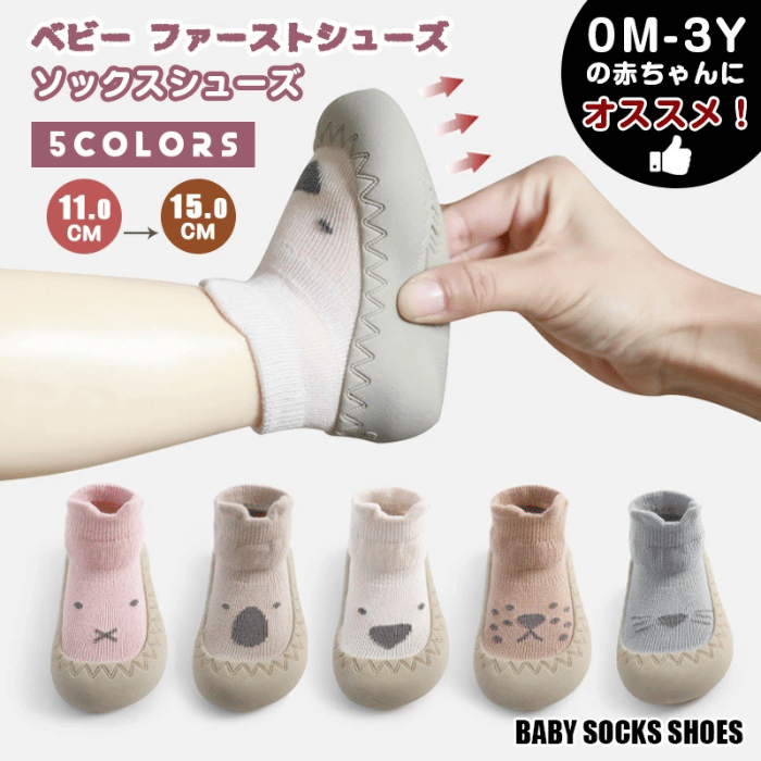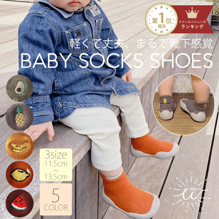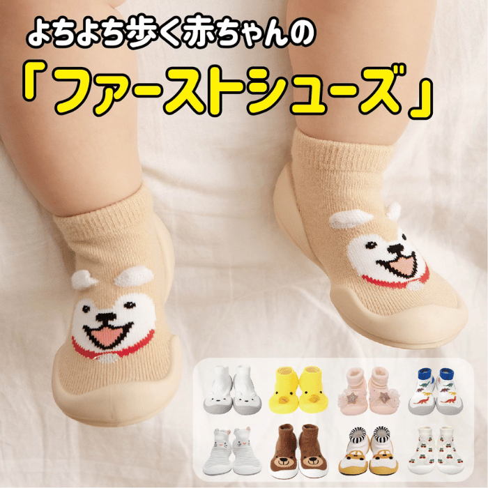 ファーストシューズは、面ファスナータイプかソックスタイプから、子供にぴったりのものを選ぶと失敗しませんよ。