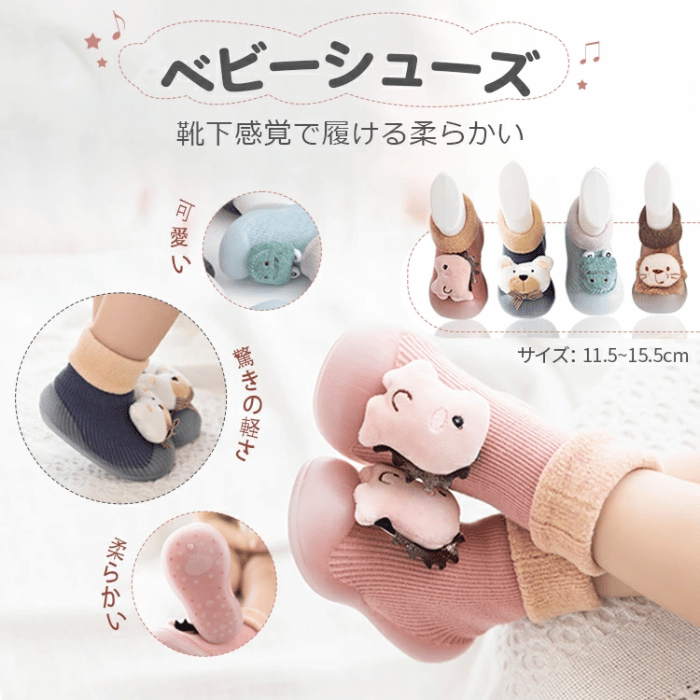 片足の重さが約40gと軽量で、柔らかいので靴を履くのを嫌がる赤ちゃんでもストレスなく歩けます。