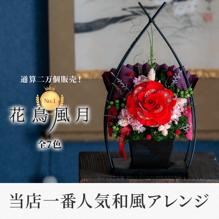 和の趣を感じる、落ち着いたデザインが魅力のプリザーブドフラワー。