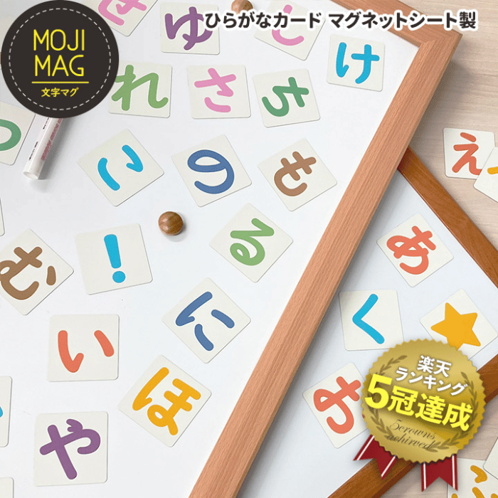 マグネット製のひらがなカードで、ぺたぺた貼って楽しく学べます。