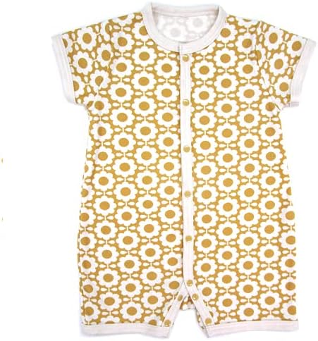 • ◇日本製◇ 北欧のお花 ディジー柄 半袖前開ロンパース 綿100% 新生児 SS4 RO3 (B.マスタード, 70-80cm)