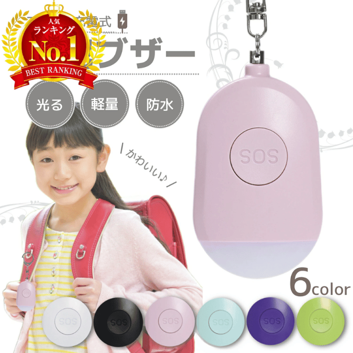 6色から選べるシンプルなデザインの防犯ブザーです。