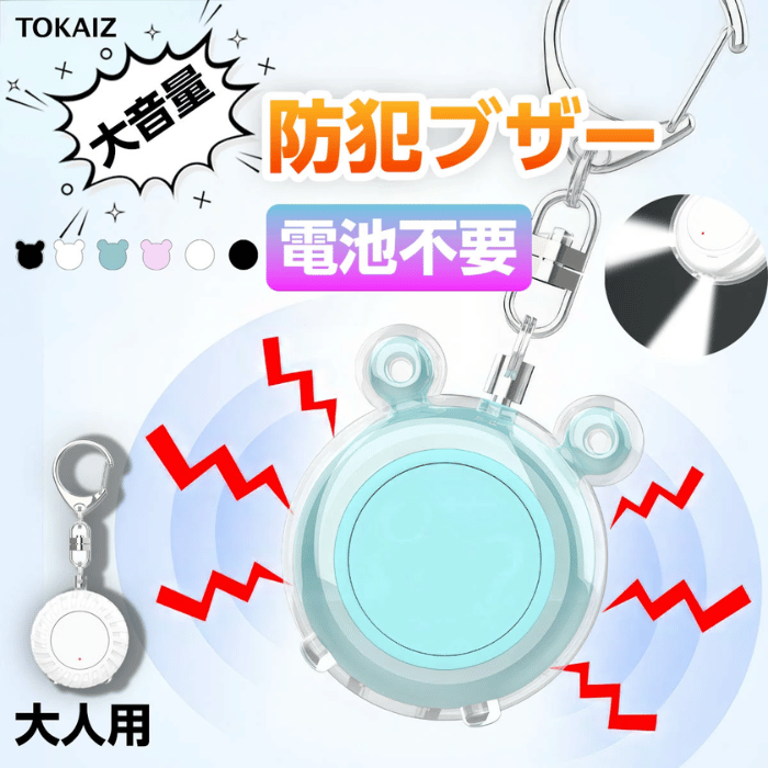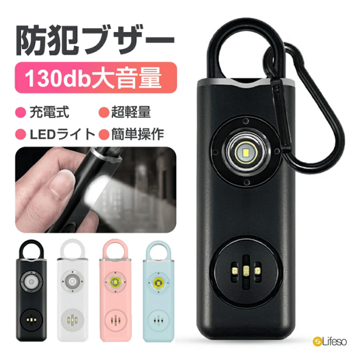 大きくて明るいLEDライトが特徴の防犯ブザーです。