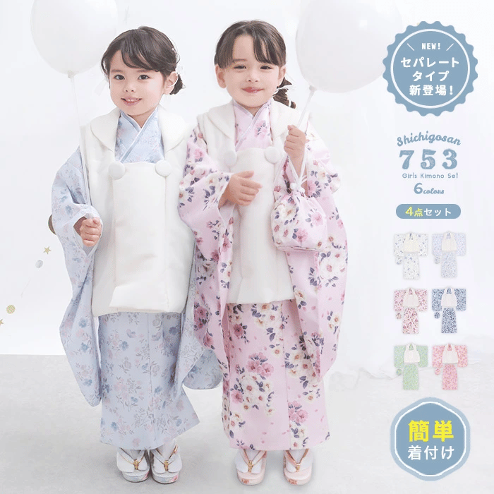 着物、被布コート、伊達襟、巾着の4点セットで、初めての七五三でも安心です。
