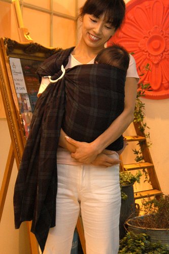 スリングは、大きな布で赤ちゃんをすっぽりと包み込むように抱っこします。