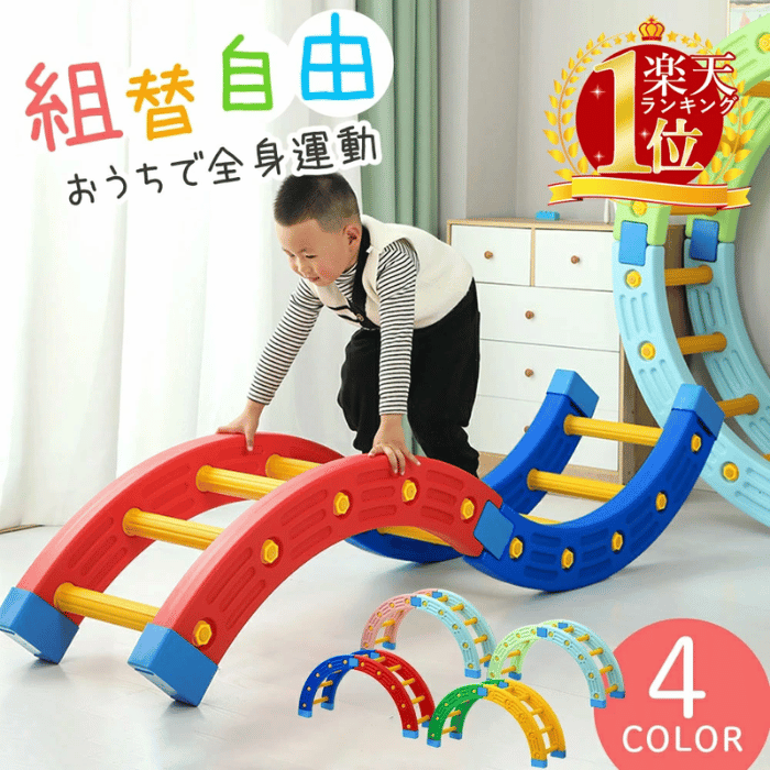 ゆりかごにしたりはしごにしたりと組み換え自由で、色々な形に変形できるバランスボードです。