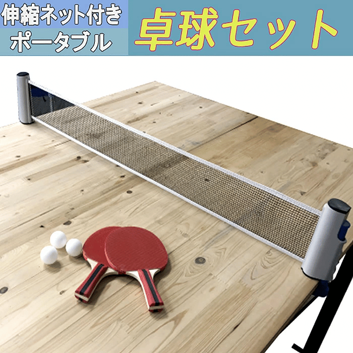 お家のテーブルにセットするだけでどこでも卓球が出来る伸縮ネットが付属の卓球セット。