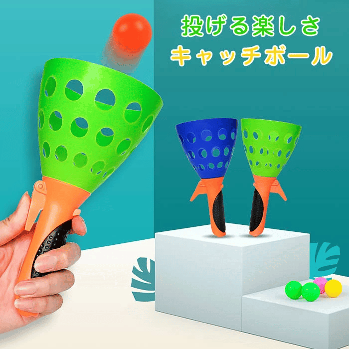 レバーを押してボールを弾き飛ばすことで遊べるキャッチボールセット。