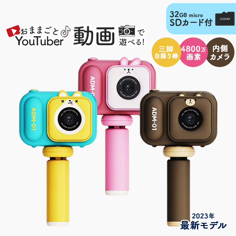 三脚自撮り棒付きで、YouTuber気分を味わえるキッズデジカメです。