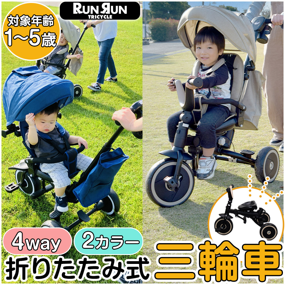 三輪車には折りたたみ式のものや、カゴ付きのものなど、さまざまな機能が備わっています。