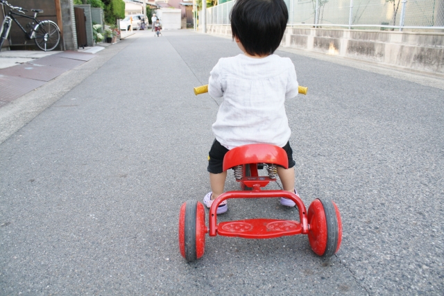 三輪車に乗り始めた時期だけではなく、自分で安定して乗れるようになっても、なにかの拍子にバランスをくずす可能性があります。