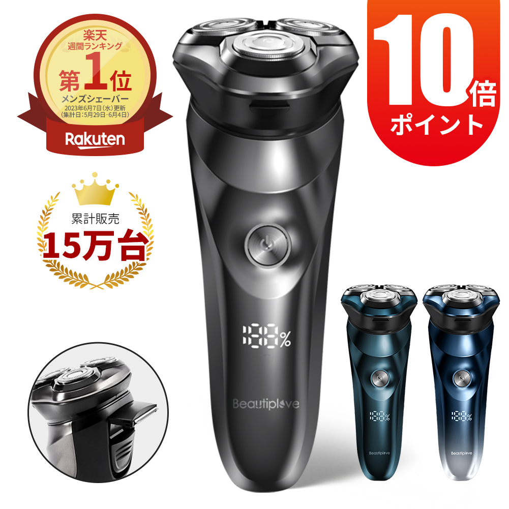 樂天ランキングでも一位を獲得した人気の電気シェーバーです。剃刀と比べて肌への負担を90%削減しています。5方向に動くヘッドで、顔の形状に合わせて剃り上げていきます。自動研磨システム搭載の27枚のパワーカット刃で切れ味も抜群。